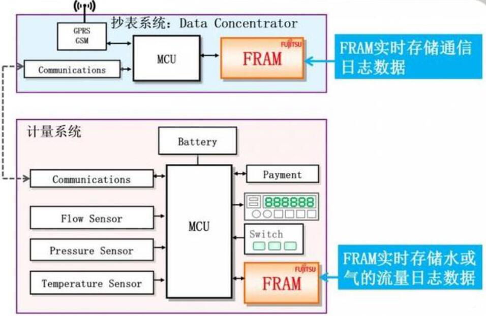 图1:富士通FRAM在智能水、气表计中的应用