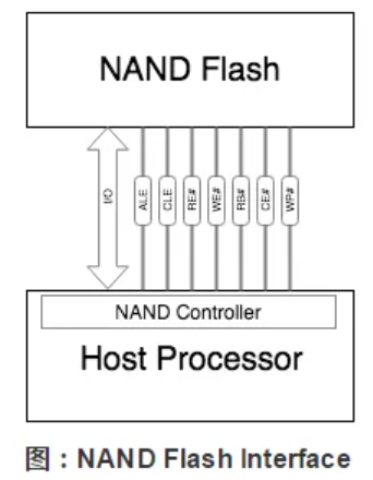 NAND FLASH需要通过专门的NFI(NAND FLASH Interface)与Host端进行通信,如下图所示: