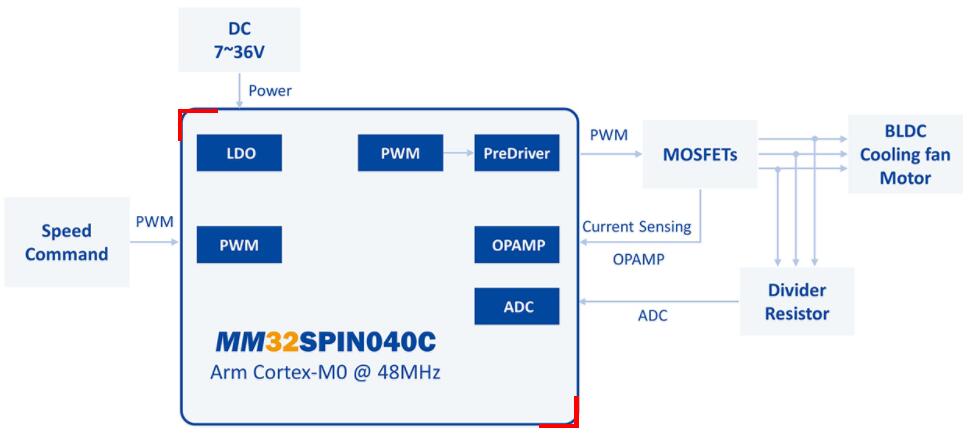 MM32SPIN040C,用于服务器风扇。