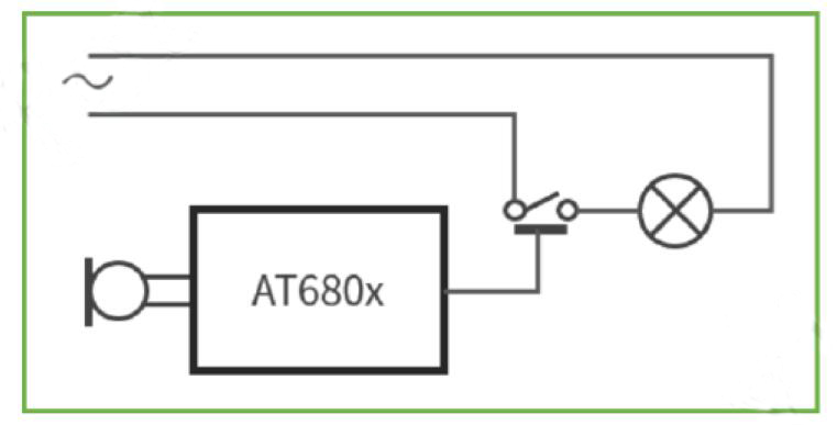 AT6802ABR1在智能声控灯具场景的工作示意图