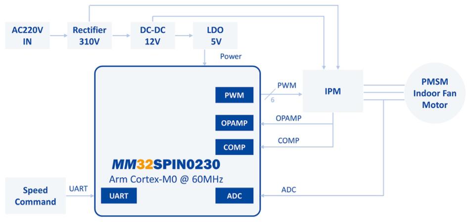 低成本32位单片机MM32SPIN0230空调内风机方案