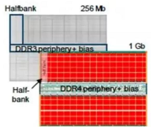 图1. Everspin 40nm 1.5nm DDR3 256 Mb(顶部)和1.2V DDR4 28nm 1 Gb(底部)