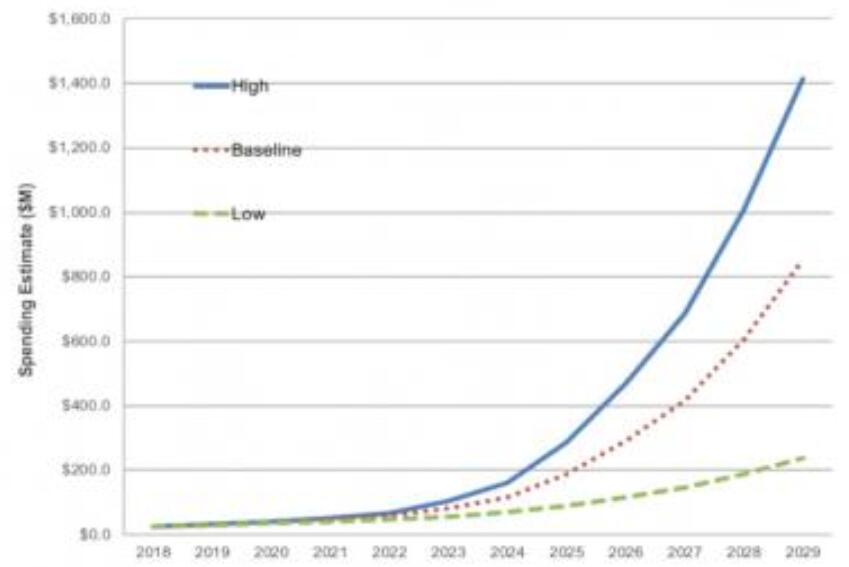 对MRAM存储器的巨大需求将刺激设备支出的稳步增长。预计MRAM设备市场将从2018年的2600万美元增长到2029年的854美元-增长33倍。