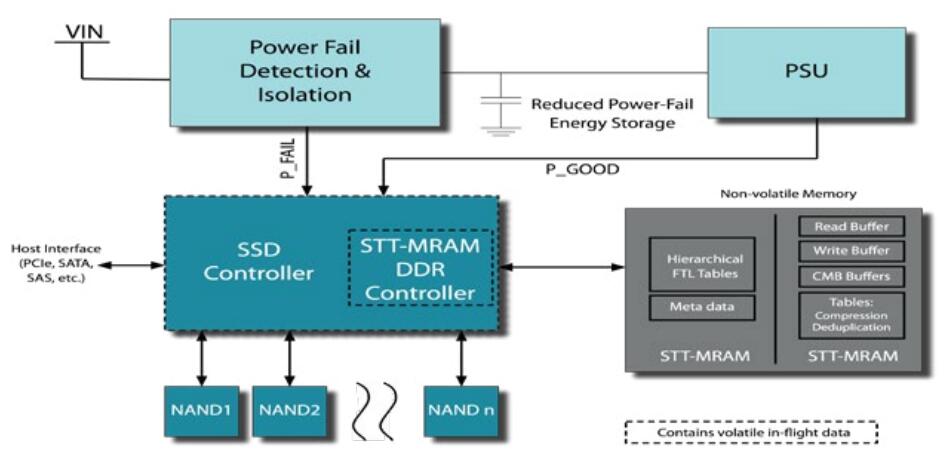 图1.STT-MRAM取代了高级SSD架构中的DDR