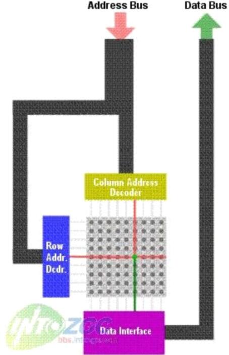 需要注意的是RAM内的部存储信息的矩阵并不是一个正方形的,也就是行和列的数目不是相同的--行的数目比列的数目少(DRAM)。