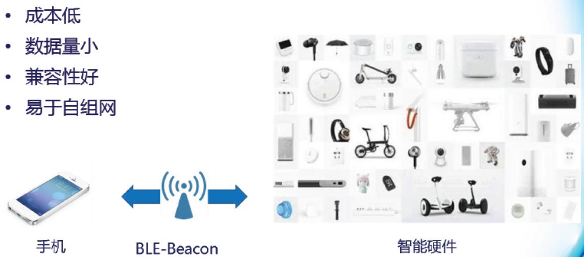 蓝牙低功耗(BLE)技术是蓝牙V4.0核心规范的一部分,它可以满足小型电池供电的设备进行低功耗无线连接的要求,并大大延长电池寿命.主要应用包括:定位标签,资产跟踪,运动及健身传感器等。
