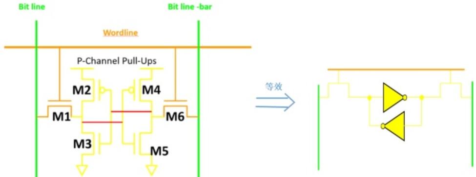 SRAM它也由晶体管组成。接通代表1,断开表示0,并且状态会保持到接收了一个改变信号为止。这些晶体管不需要刷新,但停机或断电时,它们同DRAM一样,会丢掉信息。SRAM的速度非常快,通常能以20ns或更快的速度工作。静态