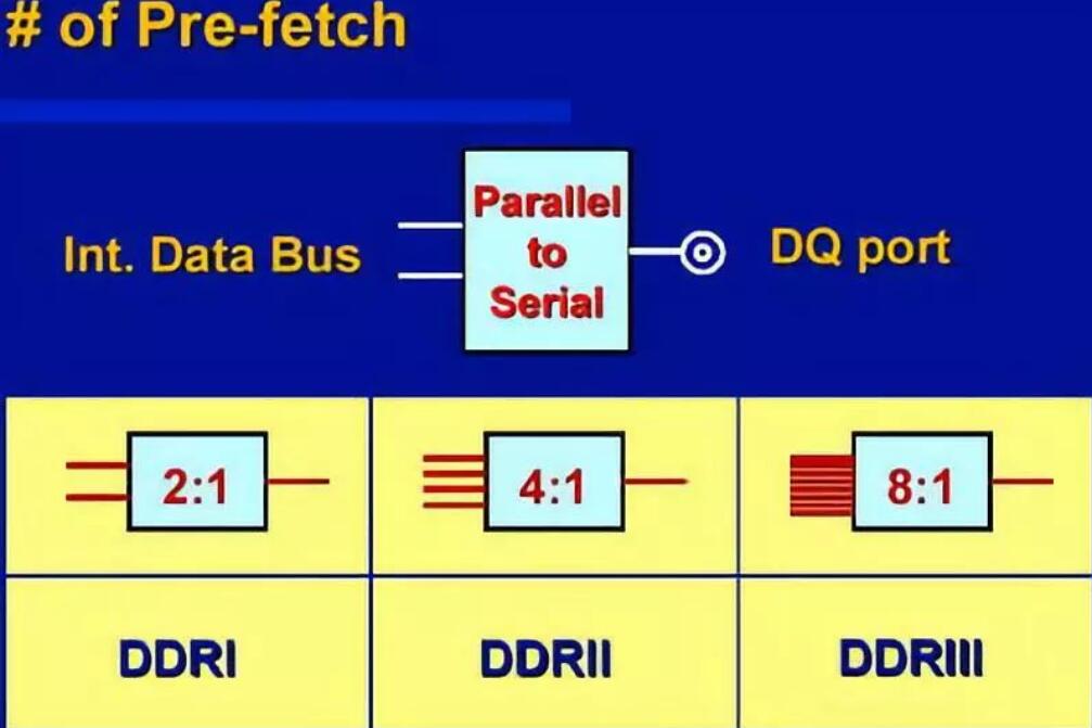 DDR2SDRAM内存却拥有两倍于上一代DDR内存预读取能力(即:4bit数据读预取)。换句话说,DDR2内存每个时钟能够以4倍外部总线的速度读/写数据,并且能够以内部控制总线4倍的速度运行。
