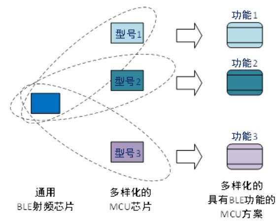 这样,通过将通用ble射频芯片和多样化的微控制器芯片相结合,制造商可以快速组合多样化和灵活的BLE单芯片或模块化解决方案,以满足不同的生态需求和市场需求。