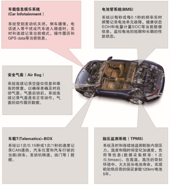 对于BMS(电池管理系统)这一新能源汽车的另一大核心技术来说,这些特性同样重要。电池管理系统需要实时记录和存储数据,其系统将以每秒或每0.1秒的频率实时和连续地记录电池的重要数据(故障信息、健康状况SOH和电量计量SOC等),同时监测电池的短期(最后几个充电周期为60次/秒)和长期(电池的整个寿命)性能。举例来说一般情况下电池组的电量保持在30%~75%表示运行正常,如果有不平衡的情况需要从其他电池组补充,此时系统需要检测记录电池组的电量、温度、电压、电流等数据,并且一次监测记录的时间不宜过长。