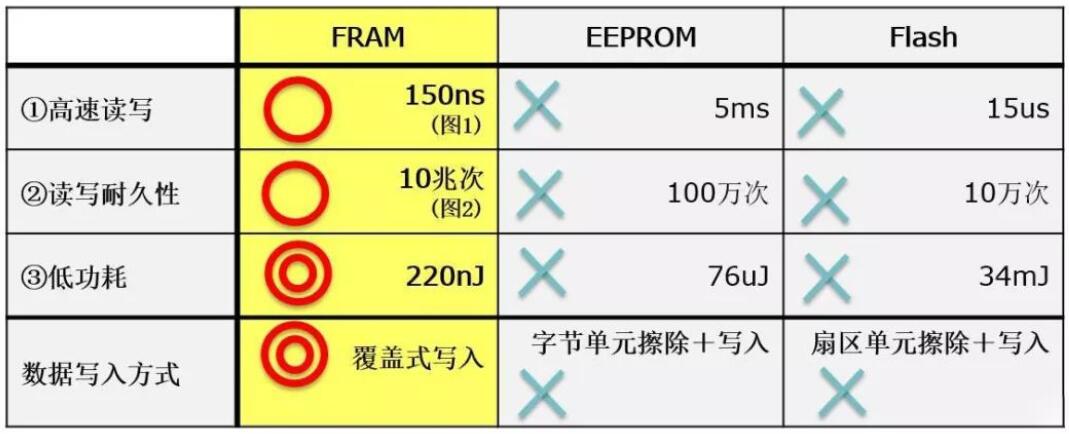 FRAM具有ROM和RAM的特点,在高速读写入、高读写耐久性、低功耗和防窜改方面具有优势。