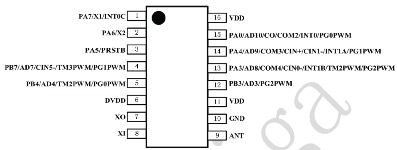 蓝牙芯片的BLE射频发射功率:最高3dBm。BLE接收灵敏度:-85dBm。包括4KW OTP ROM和256字节的SRAM。1个16位硬件定时器、两个8位定时器(可作为PWM生成器)、三个11位硬件PWM生成器、一个硬件比较器、9个IO引脚、6通道12位ADC、ADC参考电压、一组1T8X8硬件乘法器。时钟模式内部高频振荡器,内部低频振荡器,外部晶体振荡器。唤醒的IO支持两种唤醒速度:正常和快速,大部分单周期指令,可设定堆栈指针和堆栈深度。MS1586的工作温度:-20℃~+70℃,工作电压为2.2V~3.6V,封装采用SOP16(150mil)。