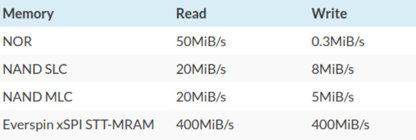 xSPI MRAM的主要亮点是400MB/s的读写速度,因为这个速度是NOR或NAND等闪存设备的数倍,在写入方面甚至更高。该产品的其他好处,比如:在编程之前无需擦除、高效写入(比NAND 低10倍,比NOR低200倍),以及可以兼容旧软件的NOR闪存模式。