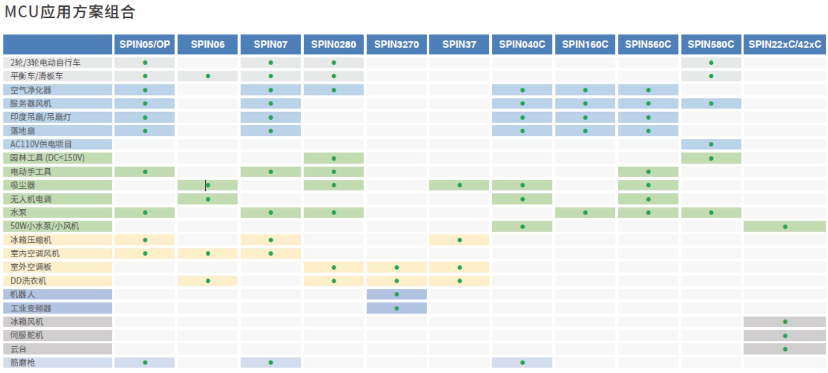 灵动微MM32SPIN系列MCU专为电机应用设计,亦可应用于通用场景。该系列包含驱动MCU、预驱MCU以及专用MCU系列: