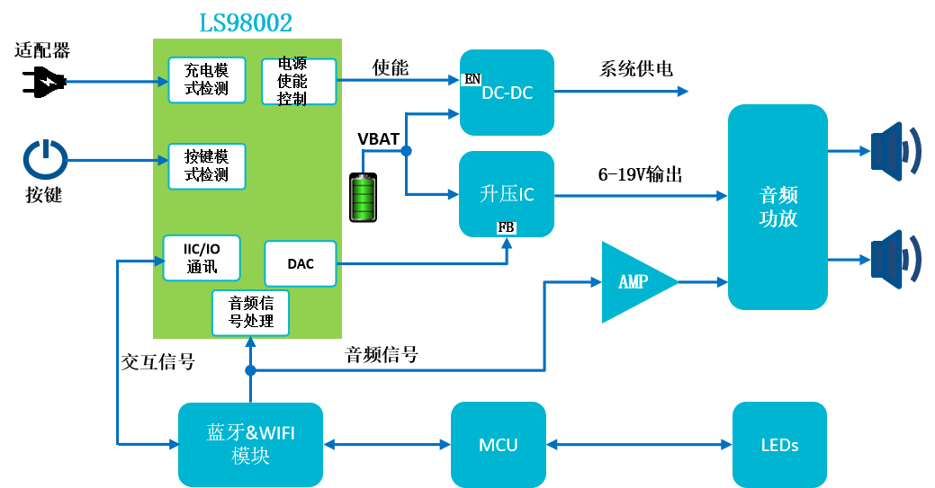 现场可重构IC、通用可配置的模数混合芯片内部集成丰富的模拟资源和数字资源,可轻松替代电路中的各种标准器件,并按照客户要求组合成最优小型ASIC,缩短开发周期,降低成本。下面介绍LS98002现场可重构CPLD芯片应用案例—蓝牙音箱。
