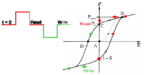 FRAM中的读取操作具有破坏性,因为它需要切换极化状态才能感知其状态。在初始读取之后,读取操作必须将极化恢复到其原始状态,这会增加读取时间的周期。