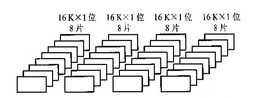 分析:64Kx8位,说明该存储器是以8位构成一个字,因此,每读出一个字,需要选中8片16kx1位的存储芯片,而一片能表示16k,因此一共需要64/16=4片,根据组合的原理,一共需要4x8=32片。