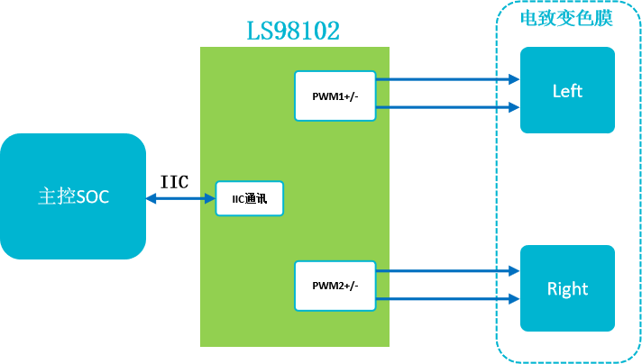与主控SOC进行IIC通讯,用于控制镜片的透光情况